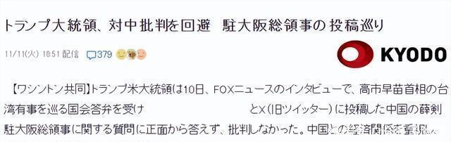 事发后,她不出意外地受到了中方的质问和指责。其中,中国驻大阪总领事一番不留情面的言辞,更是在日本舆论场上掀起轩然大波,引起了震惊、愤怒、委屈等种种情绪。 而这件事情,也被问到了特朗普面前。不难想象,许多日本人都想看,日本“坚实的盟友”能替自家首相“出头”。 然而,特朗普的反应,却给他们泼了一盆冷水。 面对主持人有引导意味的提问,即“你不能称他们(中国)为我们的朋友,对吧?”特朗普是这么说的。 “你也不能称美国的许多盟友是美国的朋友,他们从美国这里获得的利益,比中国从中美贸易中获得的利益要更多。” 特朗普补充道,他正在与中国保持着良好关系。