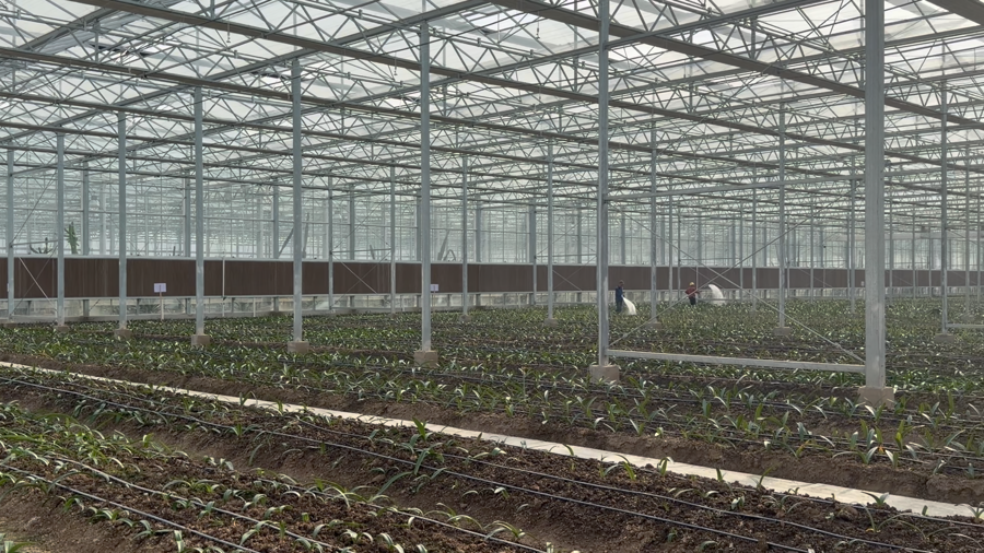 低碳花卉可持续种植示范基地大棚内部。曹景秀 摄