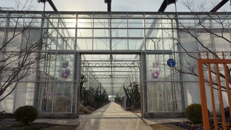 低碳花卉可持续种植示范基地大棚门口。曹景秀 摄