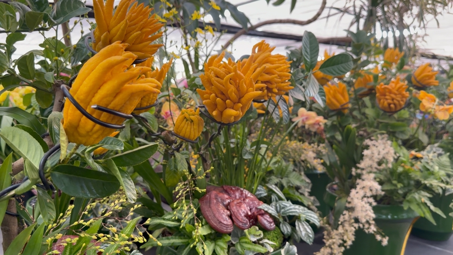 在主营盆景的“岳尊园艺”店内,佛手的清香弥漫在潮湿幽绿的大棚里,令人仿佛置身于一个热带丛林。店主董秀亮说,今年比较受欢迎的有樱花杜鹃、老鸦柿、红玉珠,以及用佛手和灵芝搭配制作的创意盆栽。