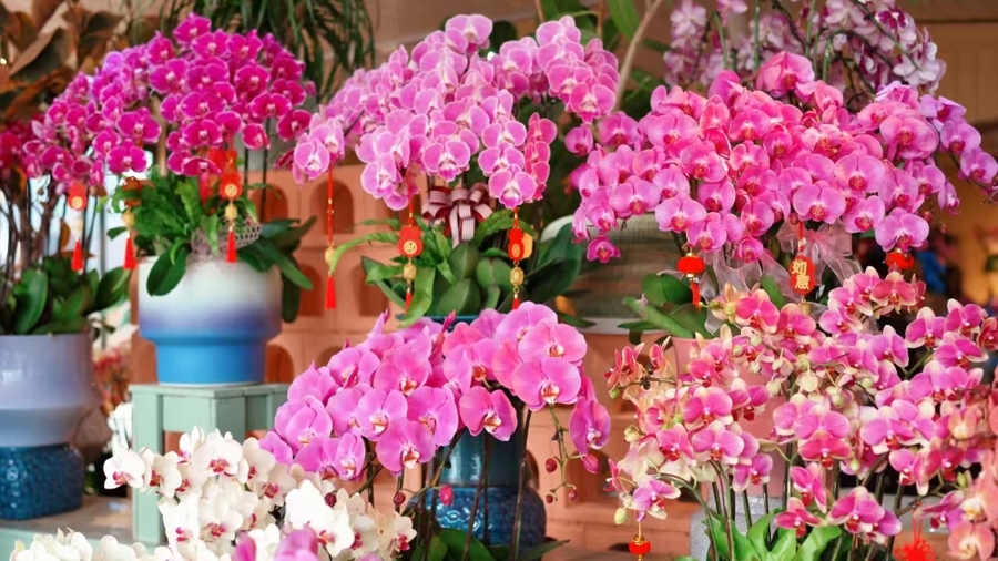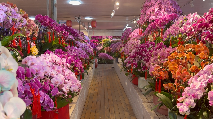 新春将至,青浦区华新镇的虹桥花谷花卉基地,已被五彩缤纷的各色花卉装点得春意盎然。市民们穿梭于姹紫嫣红之间,将蝴蝶兰、佛手、樱花杜鹃等年宵花带回家中。